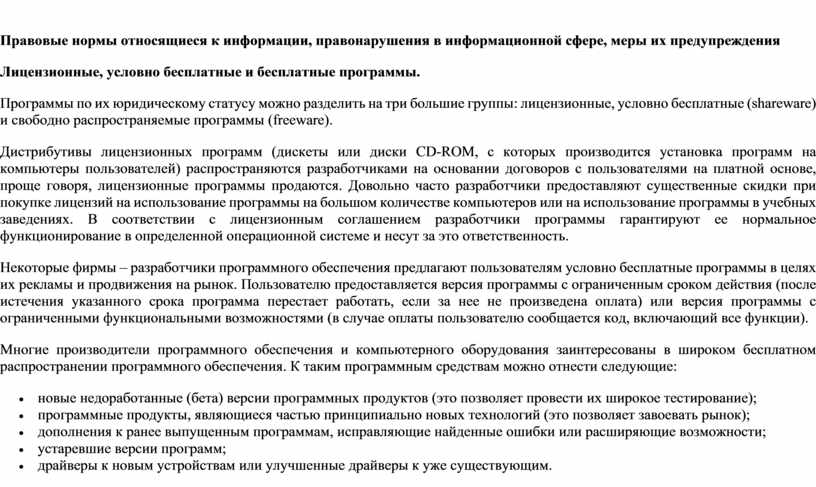 · В чем состоит различие между лицензионными, условно-бесплатными и бесплатными программами?