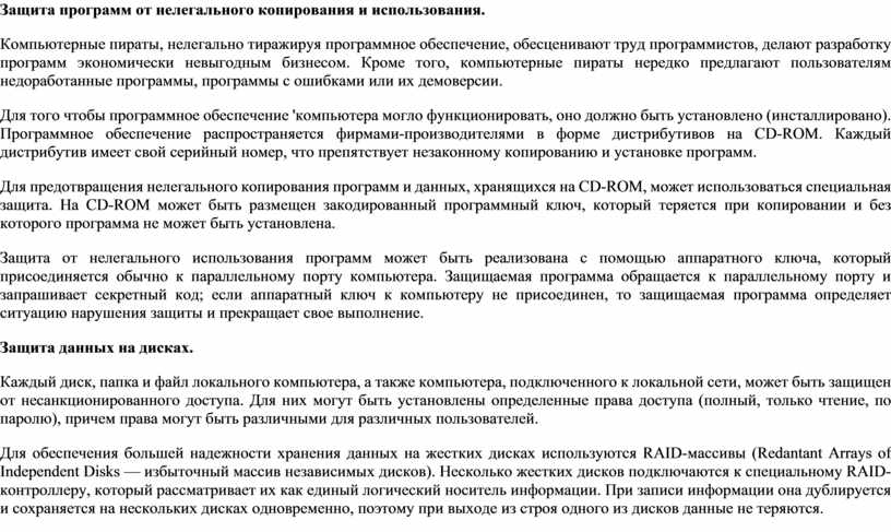 Защита данных на дисках.