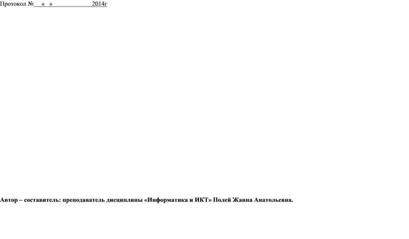 Протокол № « » 2014г