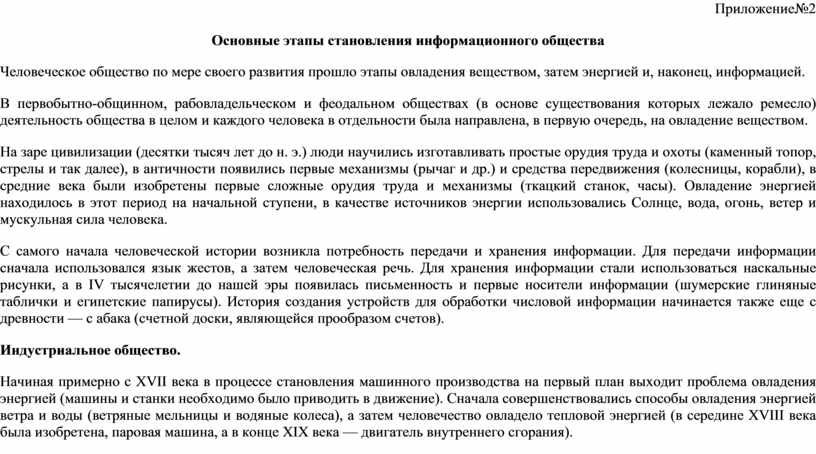 Тема: «Основные этапы развития информационного общества»