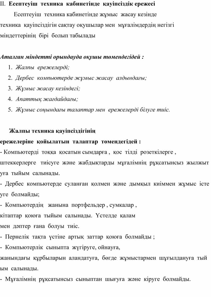 ІІ. Есептеуіш техника кабинетінде қауіпсіздік ережесі