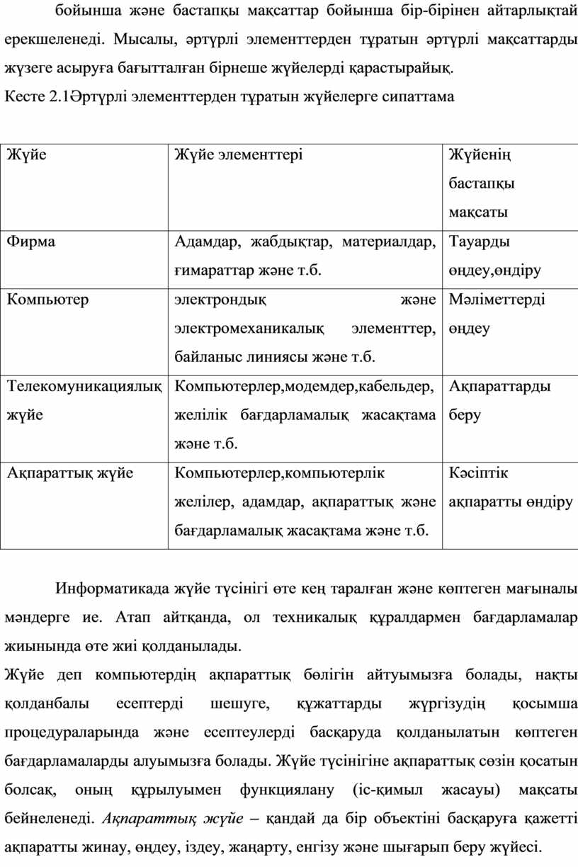 Кесте 2.1Әртүрлі элементтерден тұратын жүйелерге сипаттама