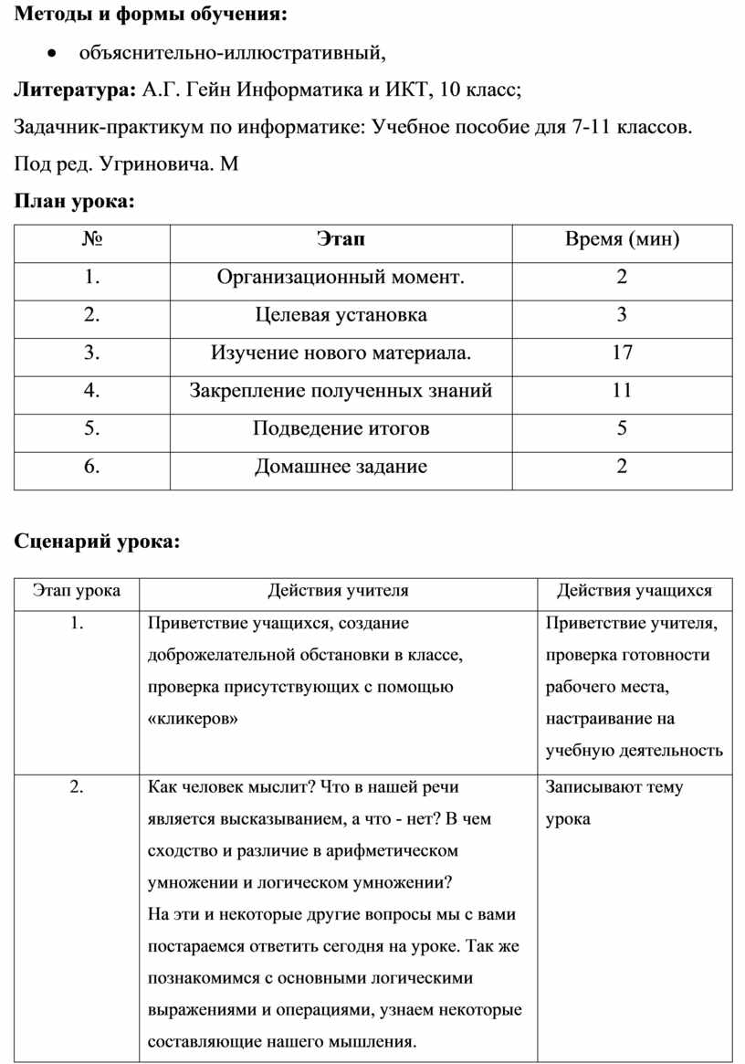 Литература: А.Г. Гейн Информатика и ИКТ, 10 класс;