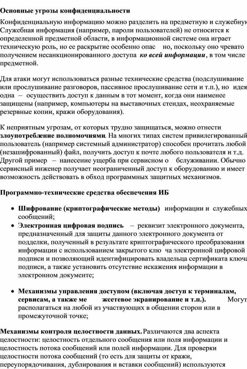 · Шифрование (криптографические методы) информации и служебных сообщений;