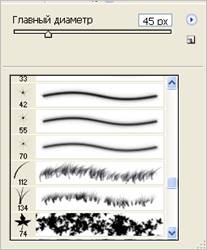 Щелкните на стрелке рядом со значком кисти. Откроется стандартный набор кистей (рис. 5.3).