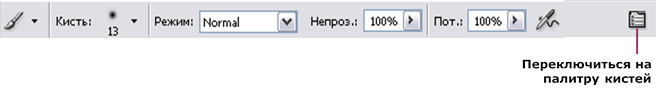 Многие инструменты программы по принципу работы похожи на карандаш. Работая с ними, вы перетаскиваете курсор по изображению, словно рисуете на бумаге. На изображении образуются штрихи. Рисуя штрих, вы строите по пути движения курсора цепочку из одинаковых элементов, находящихся близко (или не очень близко) друг от друга. Этот элемент и есть кисть. Кисть определяется для любого рисующего инструмента и является очень важным его свойством.