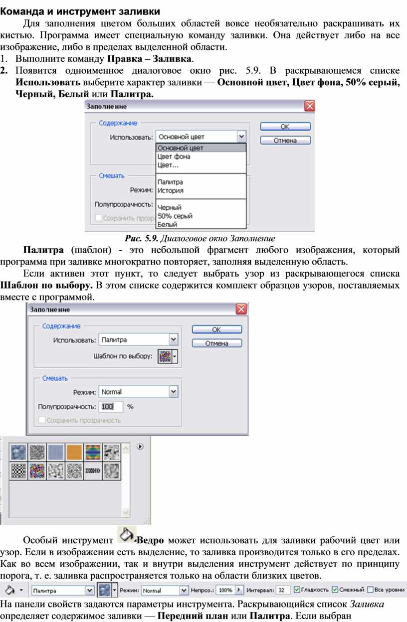 2. Появится одноименное диалоговое окно рис. 5.9. В раскрывающемся списке Использовать выберите характер заливки — Основной цвет, Цвет фона, 50% серый, Черный, Белый или Палитра.