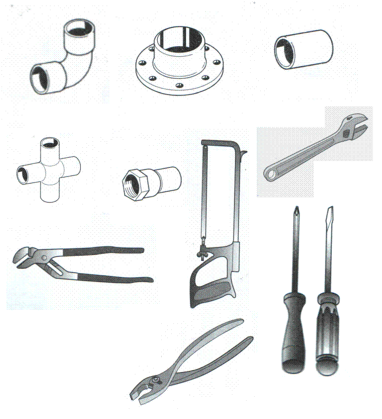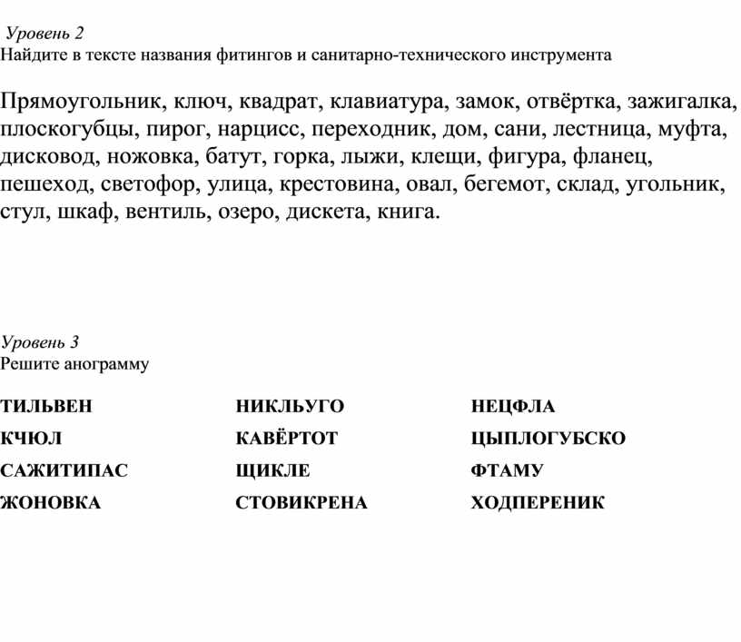 Найдите в тексте названия фитингов и санитарно-технического инструмента