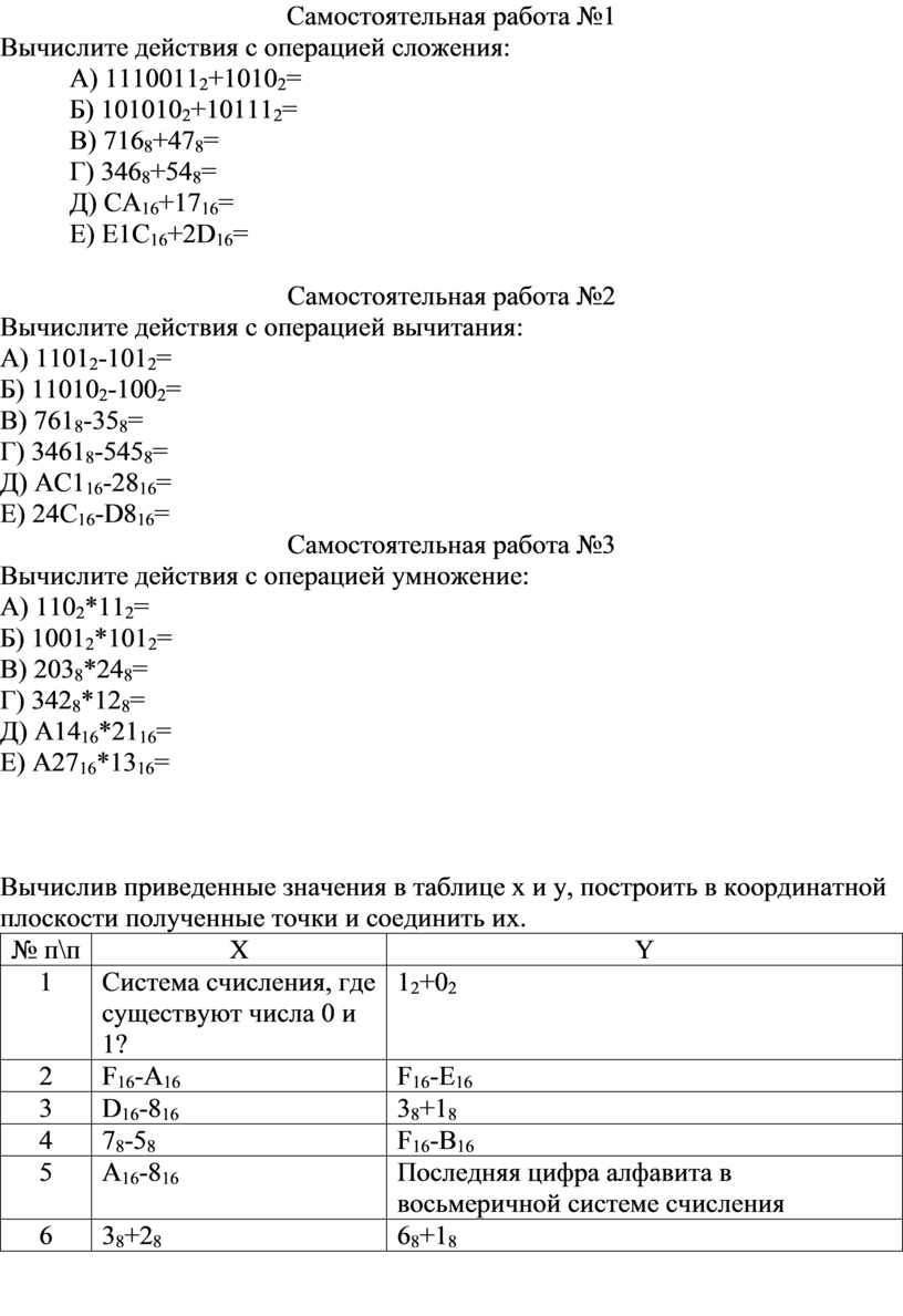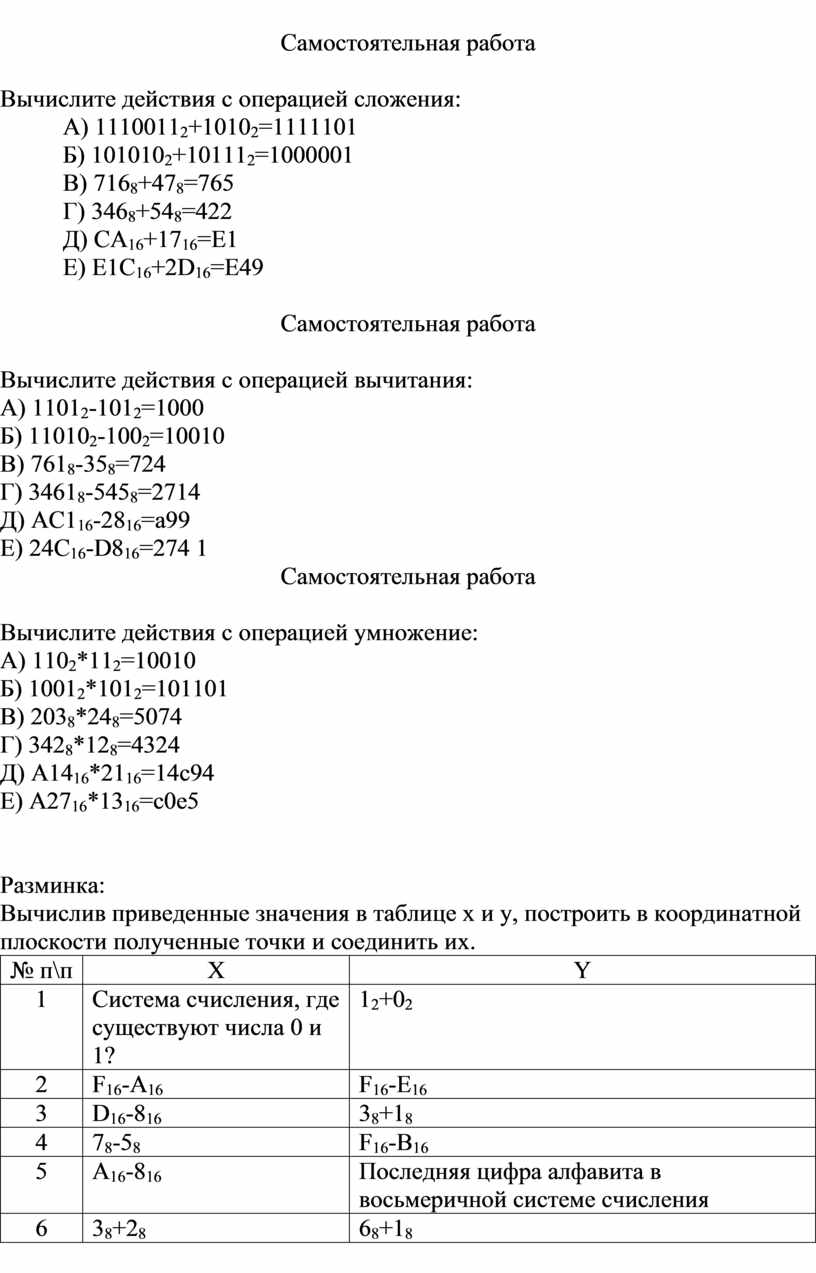 2. Развитие навыков и умений выполнения арифметических операций в позиционных системах счисления;