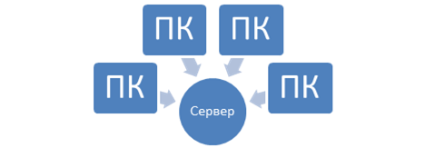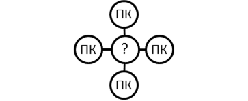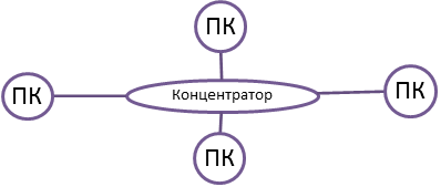 Учитель: Итак, такая схема называется одноранговая локальная сеть с топологией звезда. Нарисуйте её в тетради и запишите название.