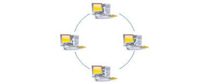 Учитель: Такая схема называется одноранговая локальная сеть с топологией кольцо. Нарисуйте её в тетради и запишите название.