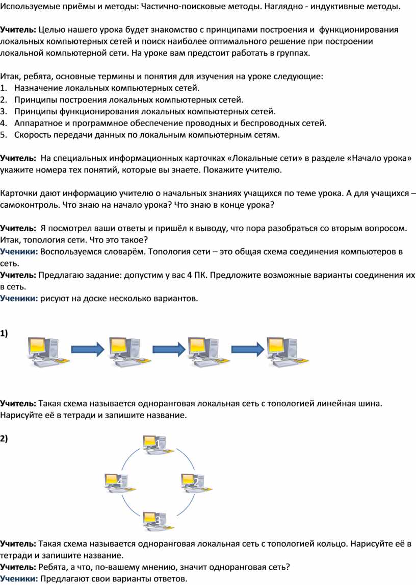 Учитель: Итак, ребята, давайте ещё раз обратимся к тем понятиям, которые нам предстоит изучить на уроке. С принципами построения локальных сетей мы познакомились?