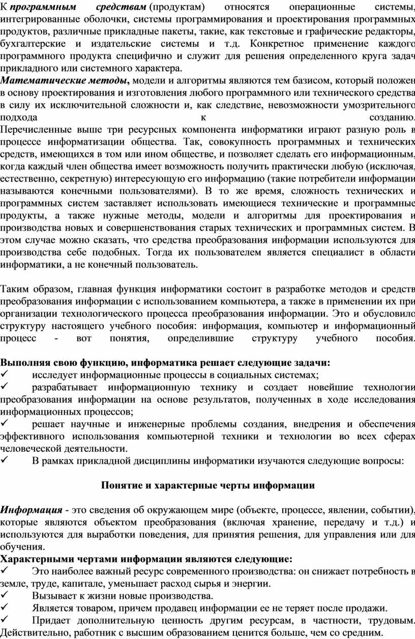 Следует отметить, что определений информатики в современной литературе множество. Это происходит оттого, что данная область знаний относительно новая и соответствующий понятийный аппарат не совсем устоялся. Анализ определений позволил выделить их существенную часть и сформулировать то определение, которое приведено ниже.