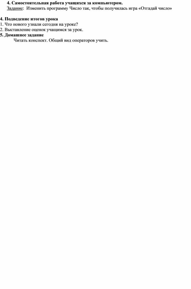 Задание: Изменить программу Число так, чтобы получилась игра «Отгадай число»