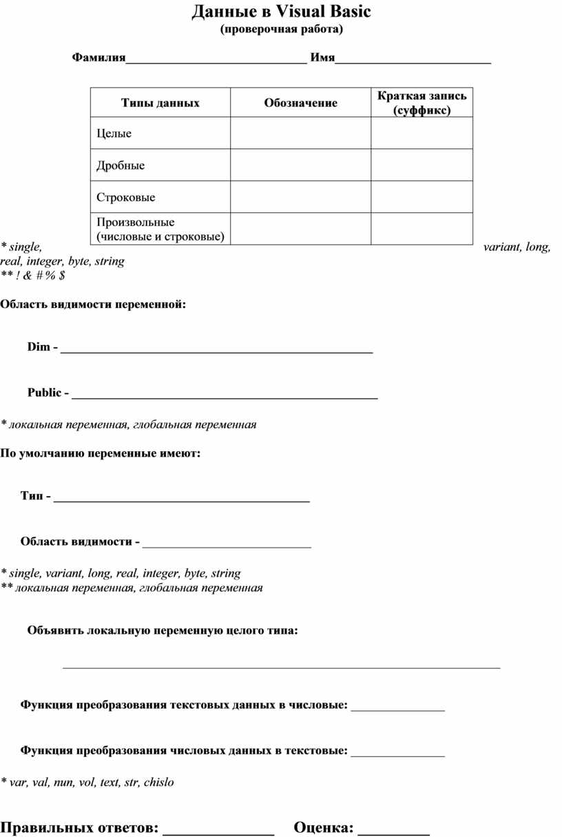 Данные в Visual Basic