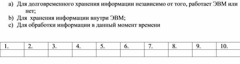 b) Для долговременного хранения информации независимо от того, работает ЭВМ или нет;