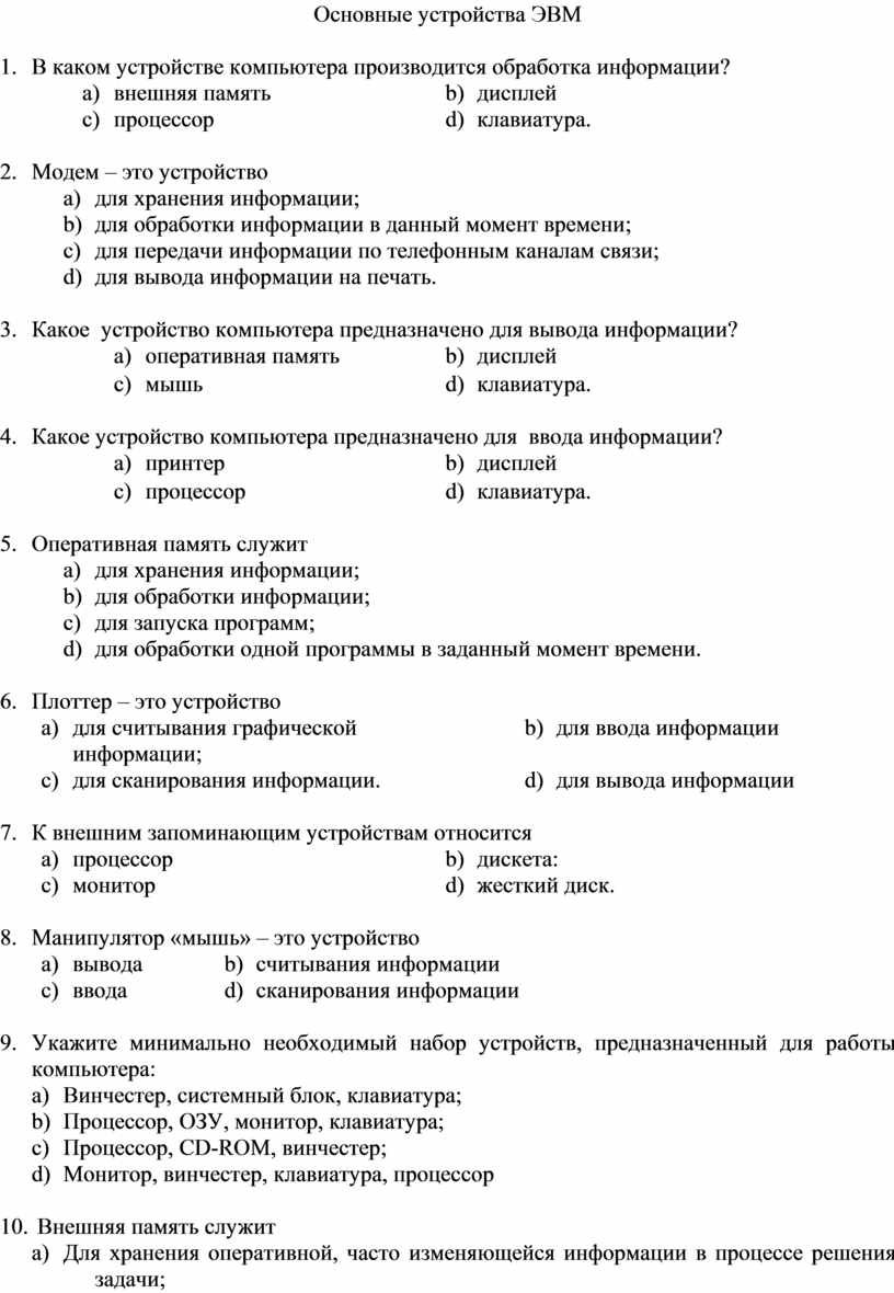 1. Устройство, при помощи которого человек вводит информацию в компьютер.