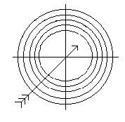 2) Берется первое значение радиуса (20) и строится первая окружность.