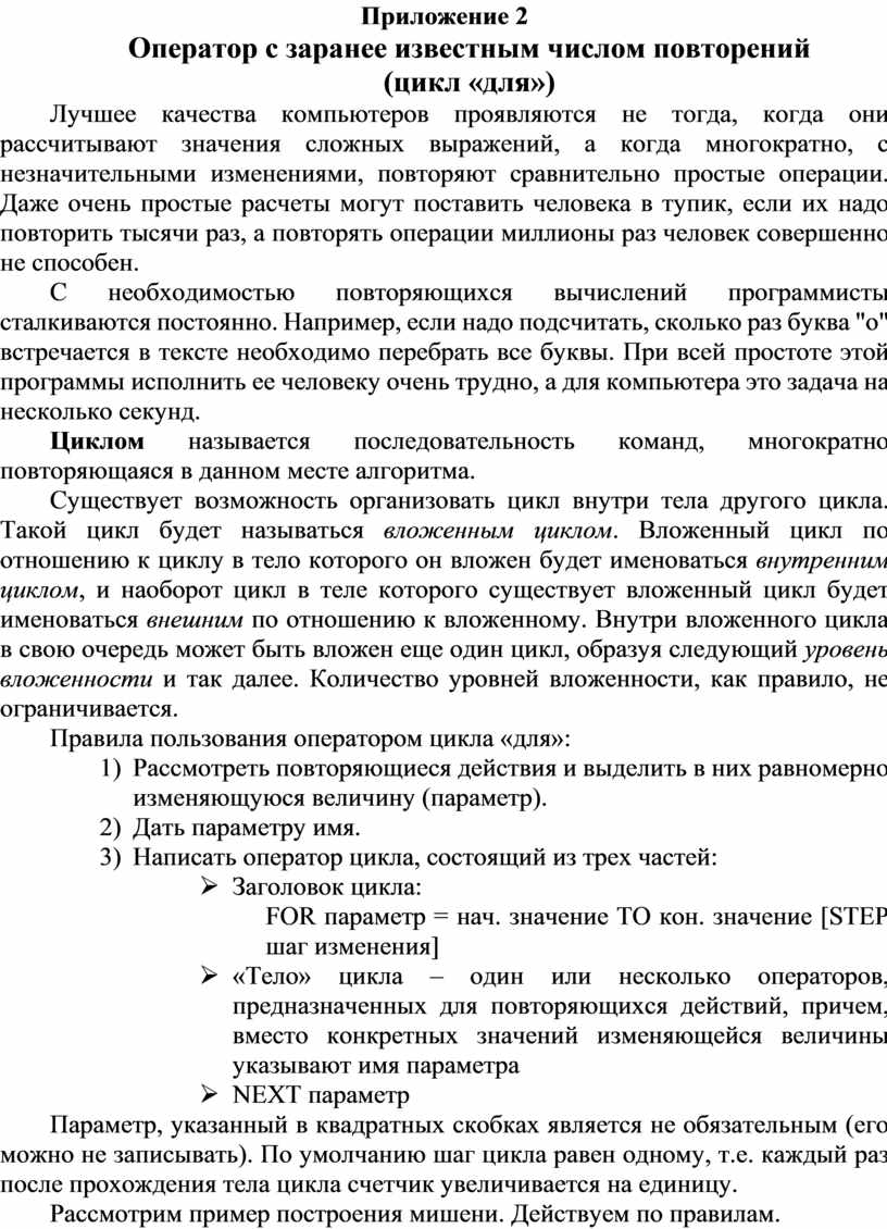 1. предметные – раскрыть понятие цикла (на примере цикла «для»); показать возможности цикла «для» при решении графических задач;