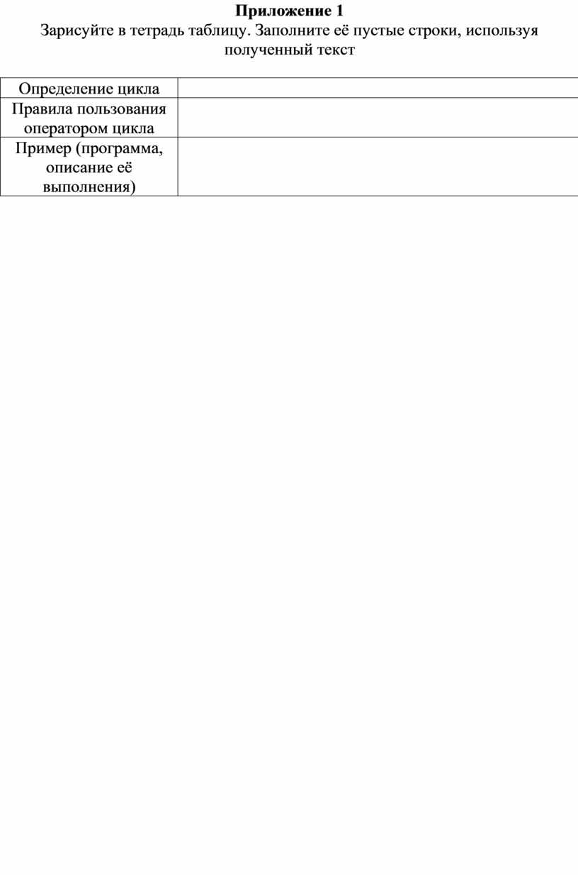 Зарисуйте в тетрадь таблицу. Заполните её пустые строки, используя полученный текст