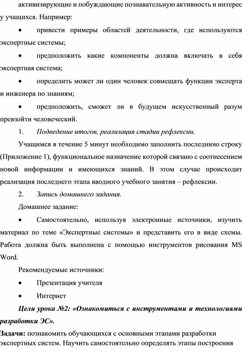Цели урока №1: «Сформировать у обучающихся основные понятия об экспертных системах».