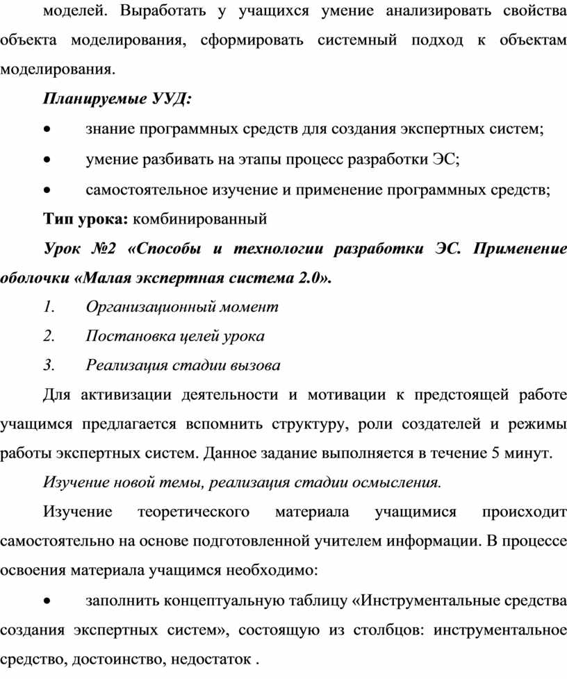 Задачи: познакомить обучающихся с основными этапами разработки экспертных систем. Научить самостоятельно определять этапы построения моделей. Выработать у учащихся умение анализировать свойства объекта моделирования, сформировать системный подход к объектам моделирования.