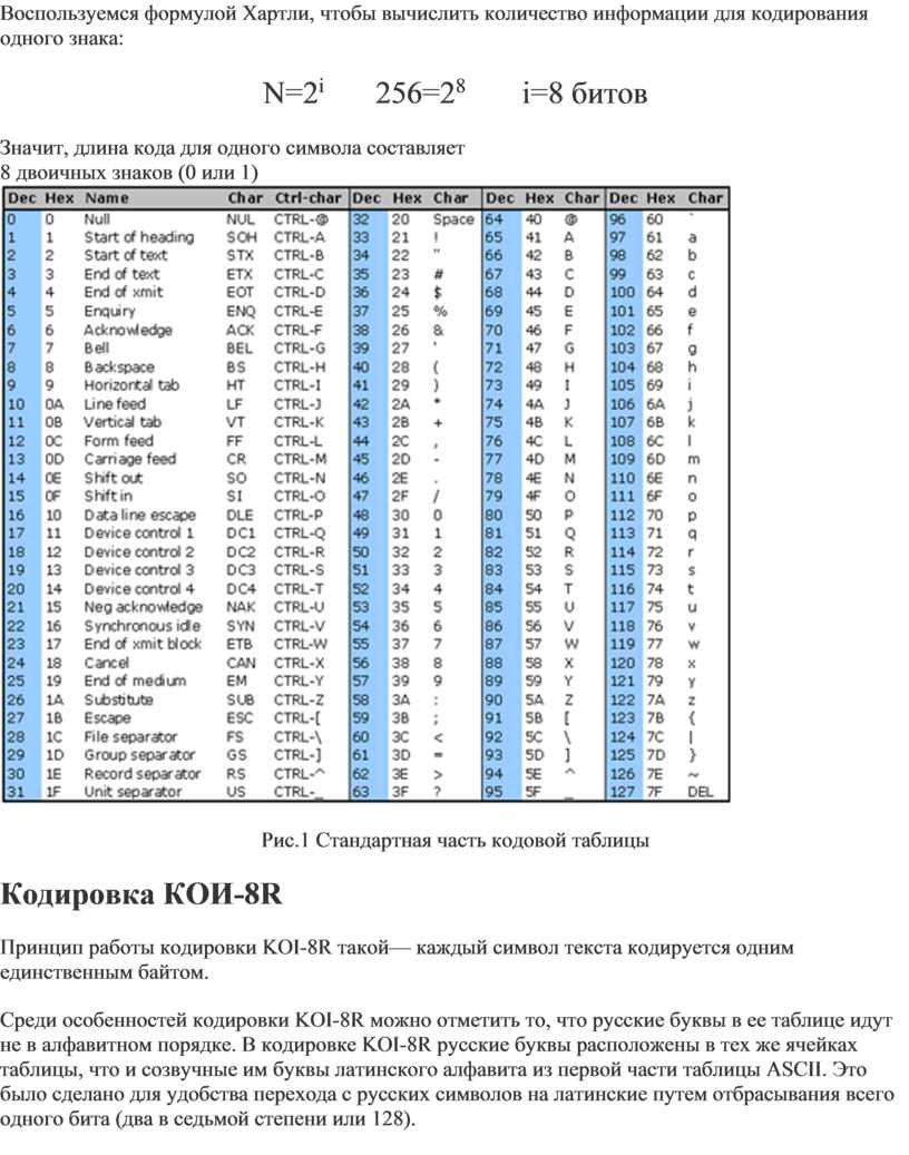 Принцип работы кодировки KOI-8R такой— каждый символ текста кодируется одним единственным байтом.