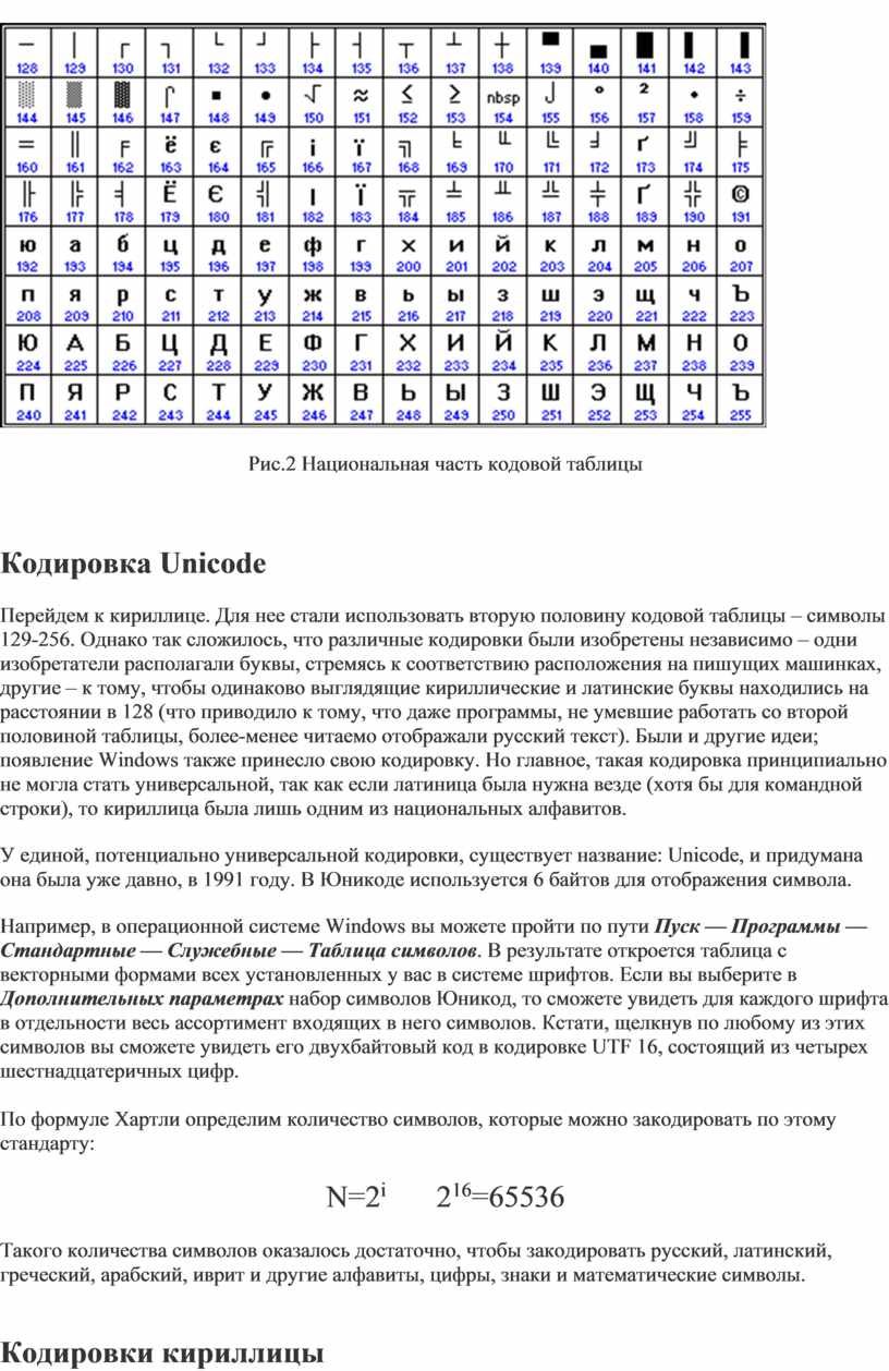 По формуле Хартли определим количество символов, которые можно закодировать по этому стандарту: