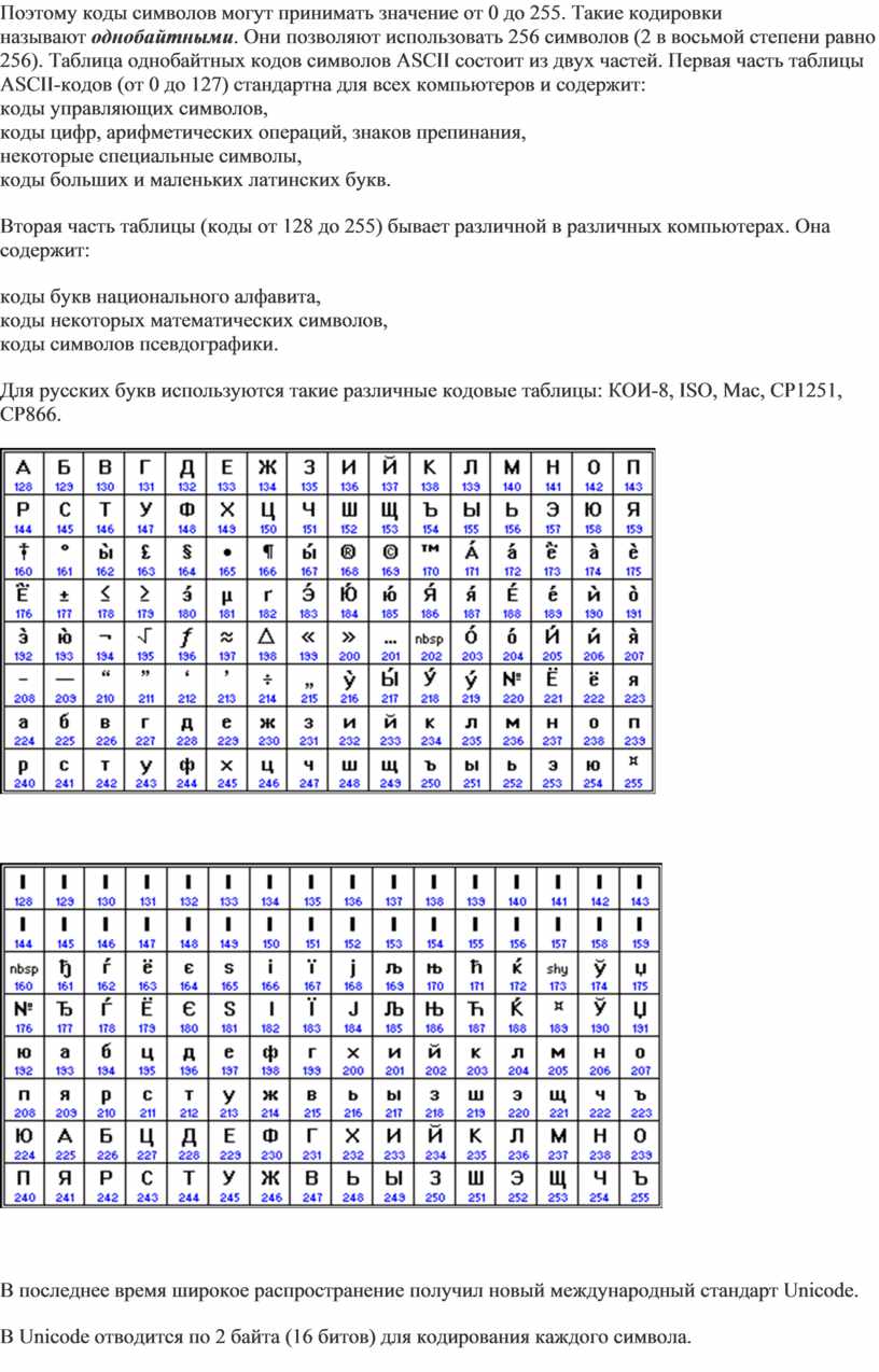 В последнее время широкое распространение получил новый международный стандарт Unicode.