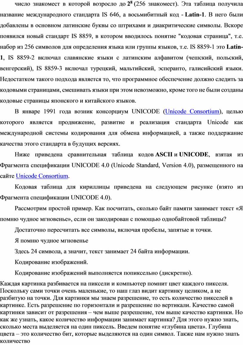 Текст 2Способы компьютерного кодирования текстовой, графической и звуковой информации. Текст в компьютере хранится посимвольно (дискретный), при этом каждому символу присваивается определённый код. Существуют специальные таблицы, с помощью которых сопоставляются символы и их коды. Эти таблицы называются таблицами ASCII.