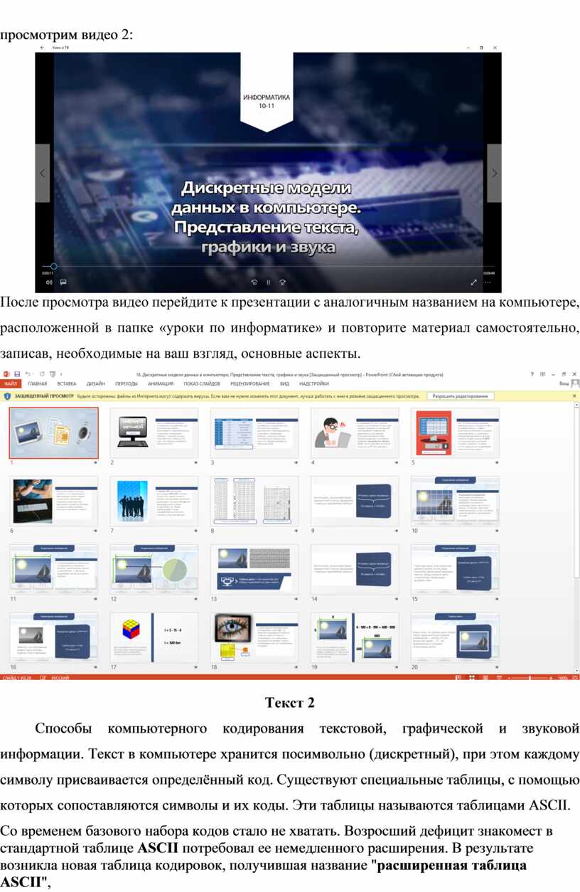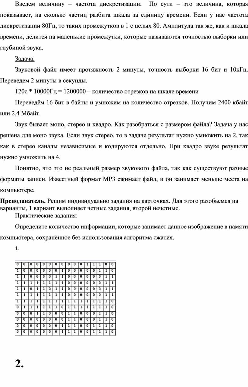 2.Тема: Дискретное представление текстовой, графической, звуковой информации и видеоинформации