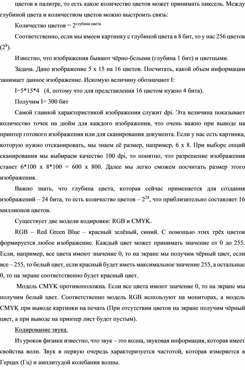 2) на основе понятия дискретизации информации изучить способы представления информации в текстовом, графическом и звуковом виде, закрепить понятия на практических задачах;