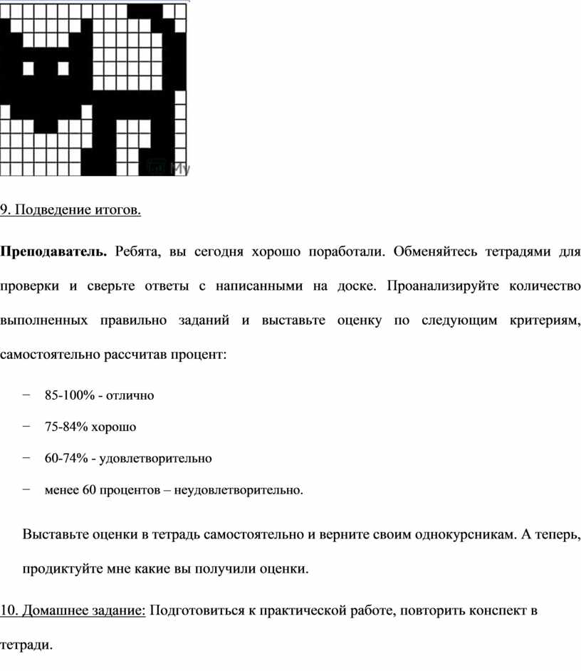 10. Домашнее задание: Подготовиться к практической работе, повторить конспект в тетради.