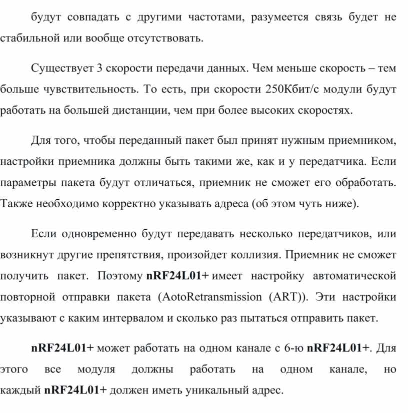 Для того, чтобы переданный пакет был принят нужным приемником, настройки приемника должны быть такими же, как и у передатчика. Если параметры пакета будут отличаться, приемник не сможет его обработать. Также необходимо корректно указывать адреса (об этом чуть ниже).