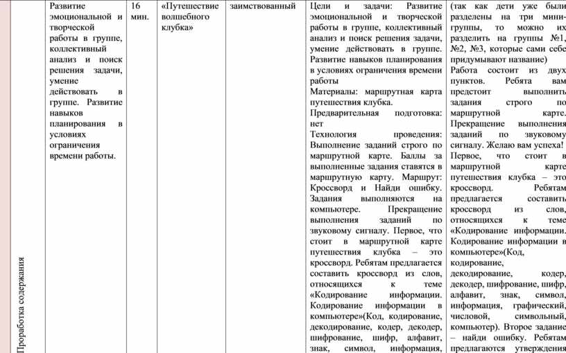 Развитие эмоциональной и творческой работы в группе, коллективный анализ и поиск решения задачи, умение действовать в группе. Развитие навыков планирования в условиях ограничения времени работы. |