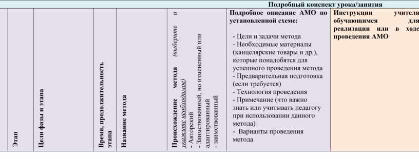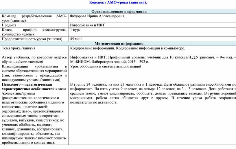 Конспект АМО-урока (занятия).