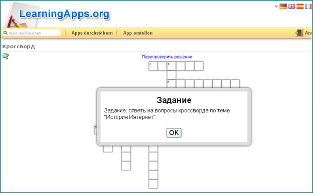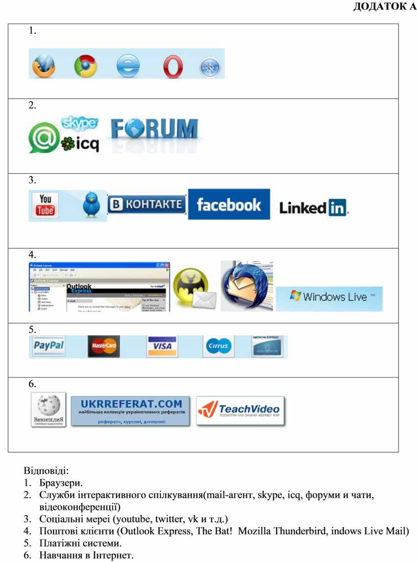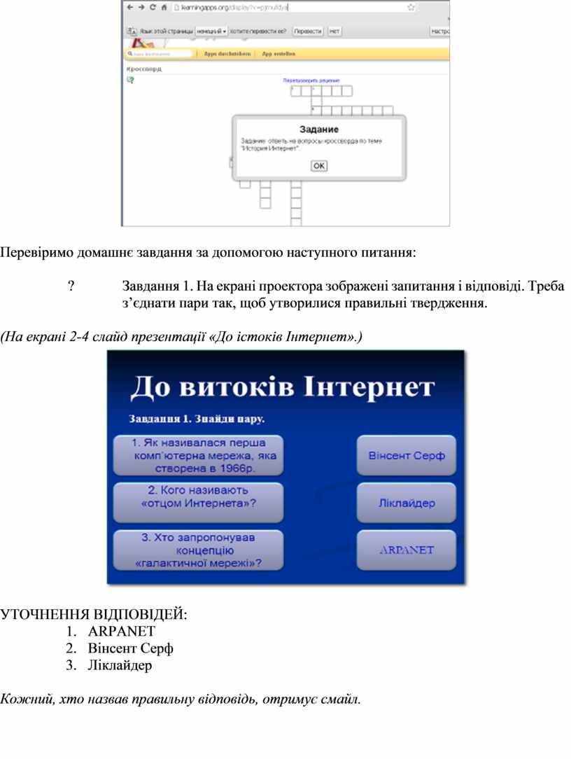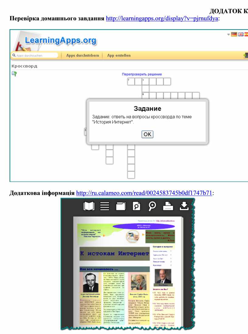 · Кросворд «До витоків Інтернету»: http://learningapps.org/display?v=pjrnufdya (Додаток К)