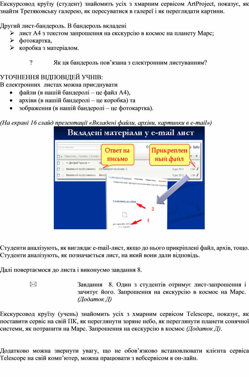 Ø Другий лист– запрошення (бандероль) на екскурсію в космос, сервіс Telescope (Додаток Д). Вкладені файли, архіви та зображення в електронні листи.