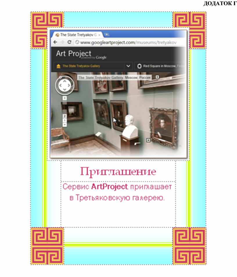 Ø Перший лист – запрошення в Третьяковську галерею: ArtProject (Додаток Г).