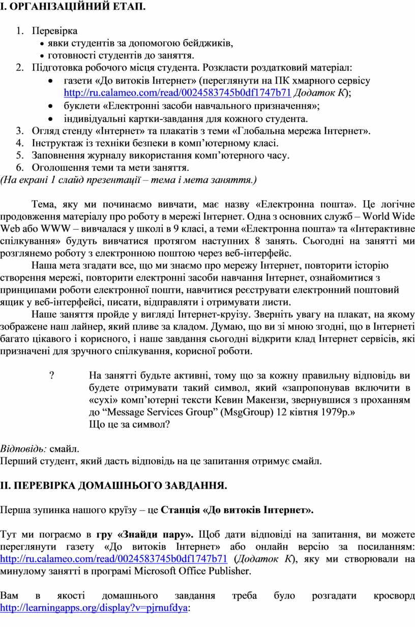 I. ОРГАНІЗАЦІЙНИЙ ЕТАП