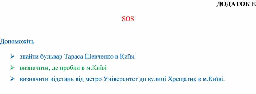 Ø визначити відстань від метро Університет до вулиці Хрещатик в м.Київі.