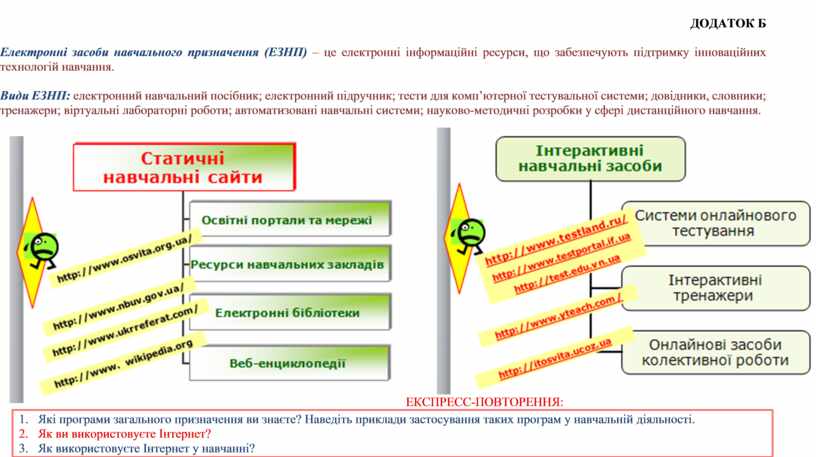 Електронні засоби навчального призначення (ЕЗНП) – це електронні інформаційні ресурси, що забезпечують підтримку інноваційних технологій навчання.