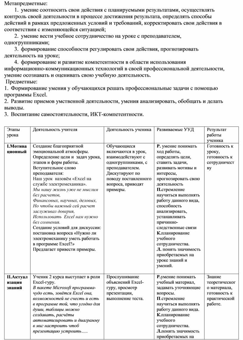 деловых, Создание условий для дискуссии: постановка вопроса «Нужно ли электромеханику уметь работать в программе Excel?» Предлагает привести примеры. |