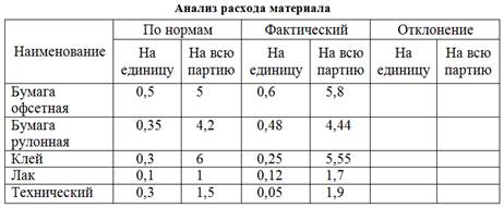 На следующем листе создать таблицу «Анализ расхода материала», представленную ниже.