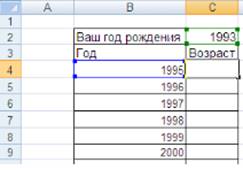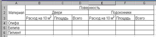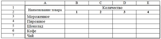 На следующем листе новой книги создать таблицу, представленную на рисунке.