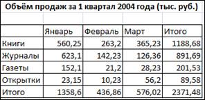 На новом листе выполнить расчёт объёма продаж печатной продукции, как указано на рисунке. Построить две гистограммы по итогам: выпущенной продукции и по месяцам.