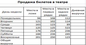 Количество билетов, проданных на указанные места, приведены в таблице.