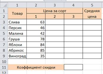 Цены за текущий сорт вычислить по формуле = Цена 1-го сорта — № сорта * Коэффициент скидки.