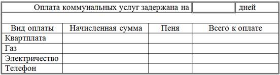 На следующем листе подготовить таблицу для начисления пеня в соответствии с образцом.