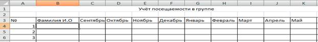 На новом листе, используя автозаполнение, подготовить таблицу для подсчёта пропусков в группе. Число записей должно соответствовать числу студентов в вашей группе.